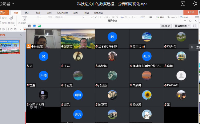 2021年10月6日18:30~20:20,庆祝学报创刊40周年系列学术报告以腾讯会议形式开讲。学报编委游文杰教授以“科技论文中的数据建模、分析和可视化”为题,从科技论文、数据建模、数据分析、可视化等四个方面,作了图文并茂、形象生动的学术报告。全校上百名师生在线听取了报告。报告后,从事相关研究的青年教师们就数据建模、分析和可视化等问题向游教授请教和交流。